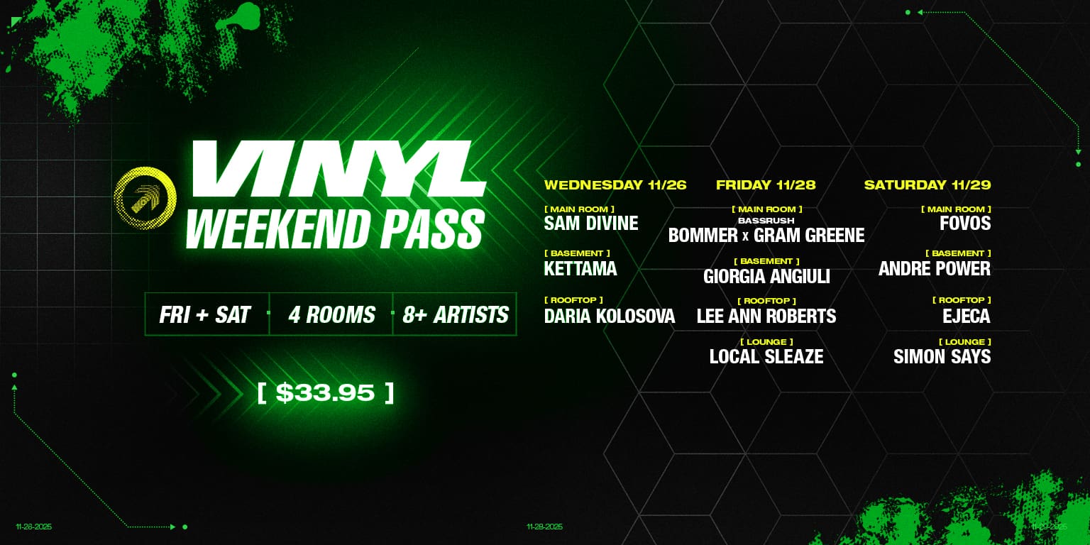 Vinyl Weekend Pass 11/26 + 11/28 + 11/29 (4 Rooms, 8+ Artists)Venue: Club Vinyl | 1082 Broadway